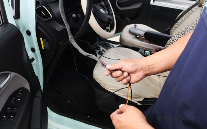 바로 이렇게 배선마다 흡음재로 꼼꼼하게 감싸주는거라고 하더군요! 이게 꼼꼼해야 나중에 차량 소음이 안난다고 하더라구요. 본론으로 들어가서~ 오늘 제 레이에 파인드라이브 내비게이션 매립하고 왔습니다.