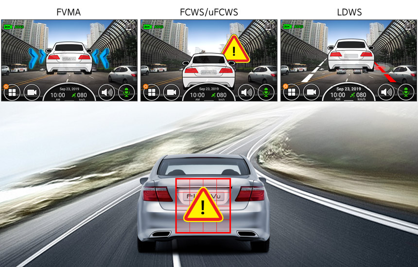 When you drive, it automatically detects traffic lanes and front vehicle, and gives warnings to keep you safe on the road.