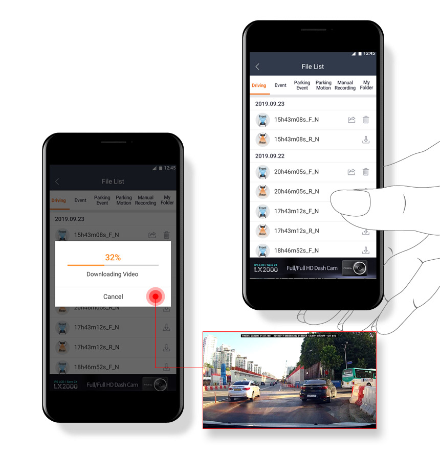 Download and playback the recordings on your smart phone, and simply share video files through FineVu mobile application.