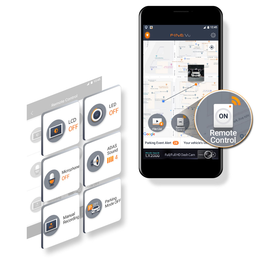 Adjust the settings of FineVu GX2000 NEW with "Remote Control" function of FineVu mobile application.