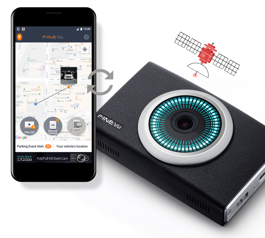 FiveVu GX2000NEW automatically switches to parking surveillance mode once your car is turned off, and automatically send the location and the front view of your car to your FineVu mobile application.