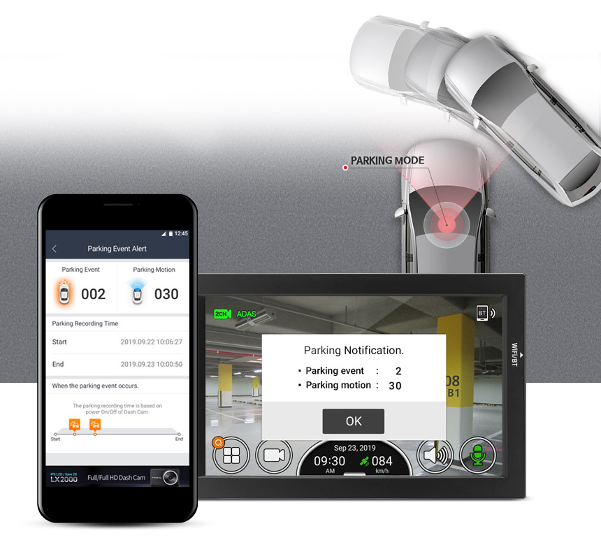 When you get in the car, FineVu GX2000 NEW informs event history that has been detected while the car is parked, making it easy to check out what happened.