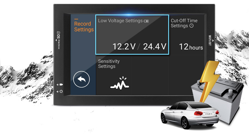 If the battery voltage of your car drops below a preset level, FineVu GX2000 NEW automatically detects and cuts off it's own power to protect the battery of your car.