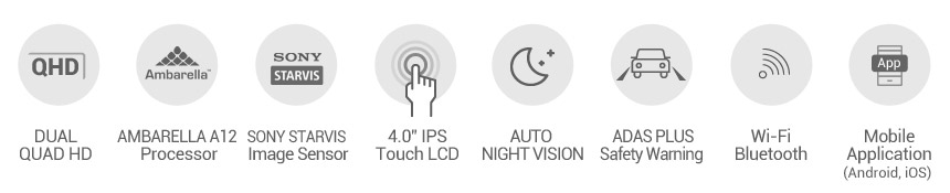 FineVu GX2000 NEW utilizes the AMBARELLA A12 processor that has 2 times higher performance than A7 processor and minimizes power consumption.