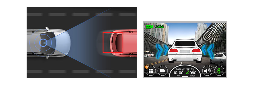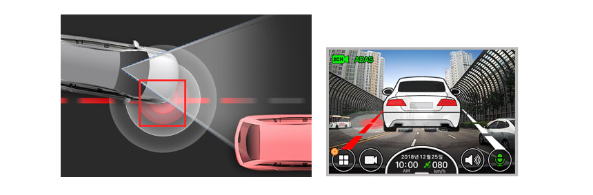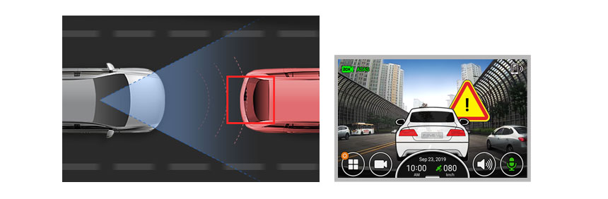 When you drive, it automatically detects traffic lanes and front vehicle, and gives warnings to keep you safe on the road.
