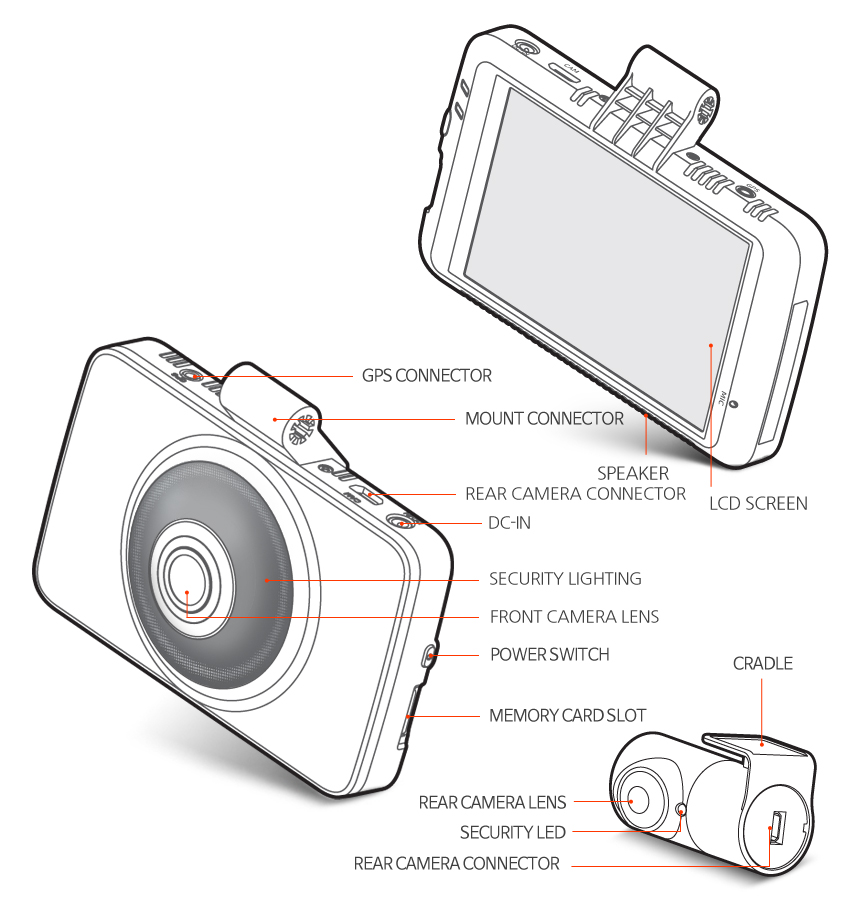 Security LED is a warning light that has a blinking LED in front of dashcam as a good deterrence on the road and parking lot.