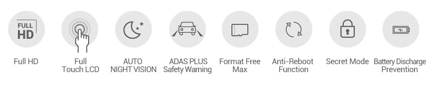 The ADAS PLUS (Advanced Driver Assistance Systems) help safe driving with warnings of sound and alerts on LCD screen.